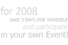 So for 2008 save 3 days for yourself and participate in your own Event!